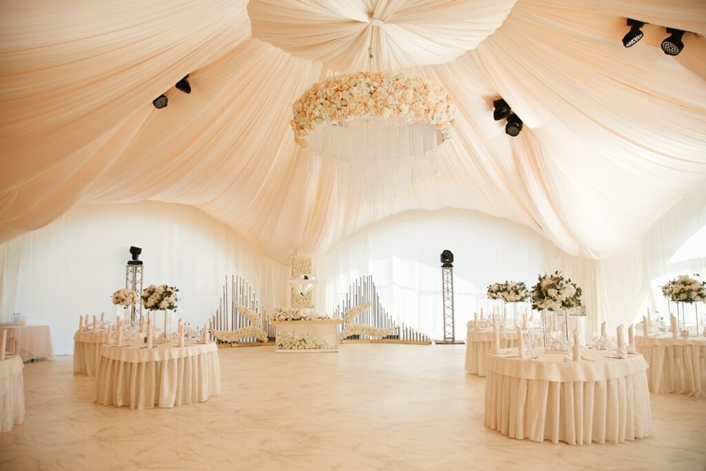 Are you looking for an eye-catching way to make your wedding tent even more special? Whether it’s outdoors or inside, the ceiling of your tent can be an excellent space to express creative ideas and elevate the atmosphere of your big day.