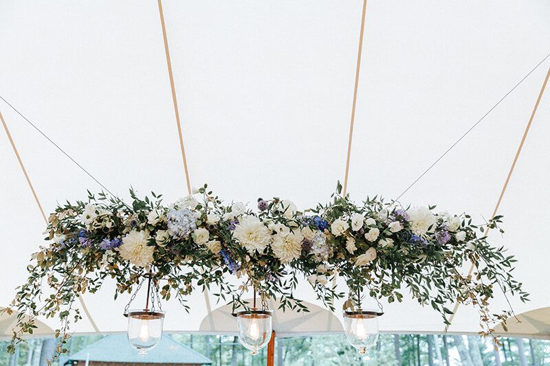 One area that often goes unnoticed, but has a considerable impact on the overall ambiance, is ceiling décor. There are so many different options when it comes to choosing a ceiling treatment for your wedding tent – from suspended bouquets of flowers, and ribbons draped gracefully across the canopy, to delicate chandeliers sparkling down on guests.
